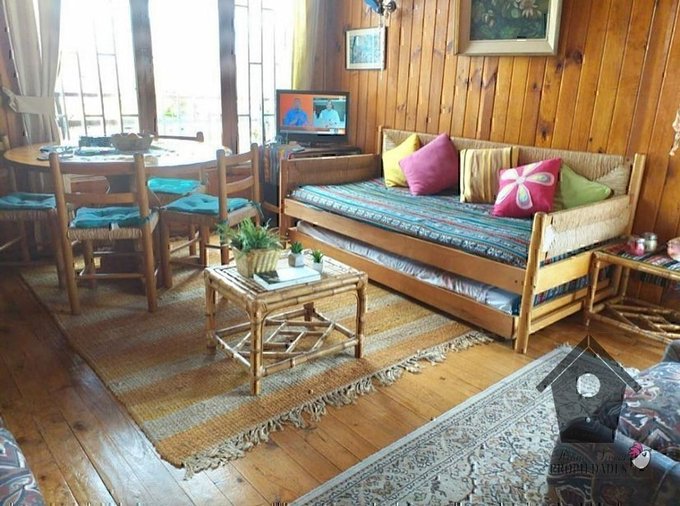 Casa de madera, con piso de madera en living comedor y dormitorios, cerámica en baños y cocina. Terrazas exteriores con barandas de madera. Parrilla en obra.