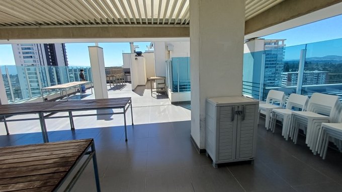Sala de cine, quincho panorámico, sauna, piscina temperada, gimnasio, sala multiuso, sala de reuniones, juegos para niños, lavandería, entre otros servicios.