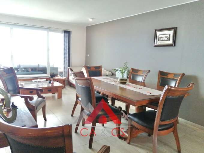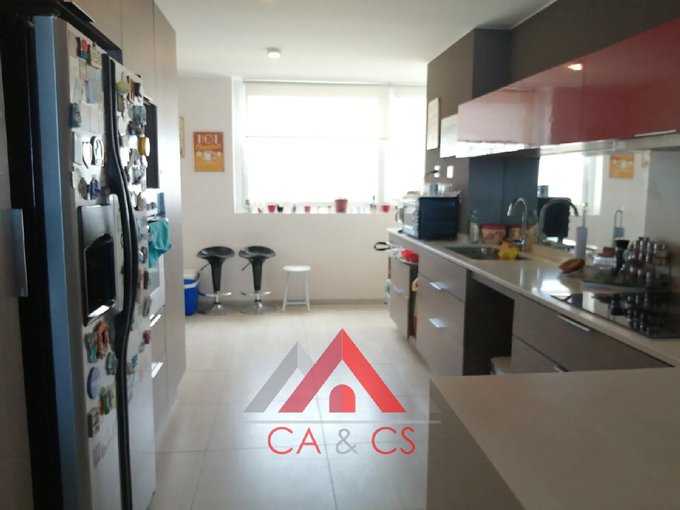 La propiedad cuenta con amplio living comedor con salida a terraza cerrada; cocina tipo americano amoblada y equipada con horno empotrado, encimera, campana y loggia.