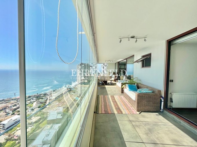 Gran departamento de finas terminaciones, cómo nuevo, ubicado en sector privilegiado de Costa de Montemar, con panorámica vista al mar.