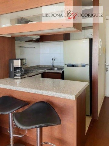 Cocina americana amoblada, living-comedor, terraza cerrada.