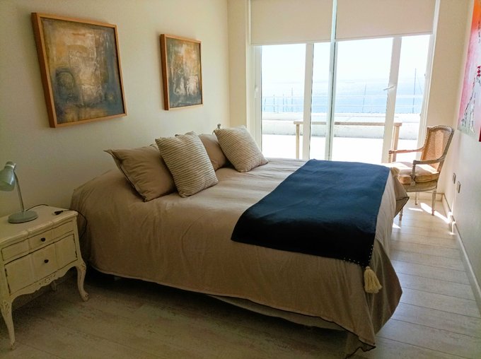 Departamento con 3 dormitorios amplios, dormitorio principal en suite y con walking closet, segundo dormitorio con espacio para 2 camas de una plaza y media, tercer dormitorio en suite y amplio closet; 3 baños completos, cocina americana amoblada, living comedor con salida a espectacular terraza de 55 metros cuadrados aproximados con vista al mar.