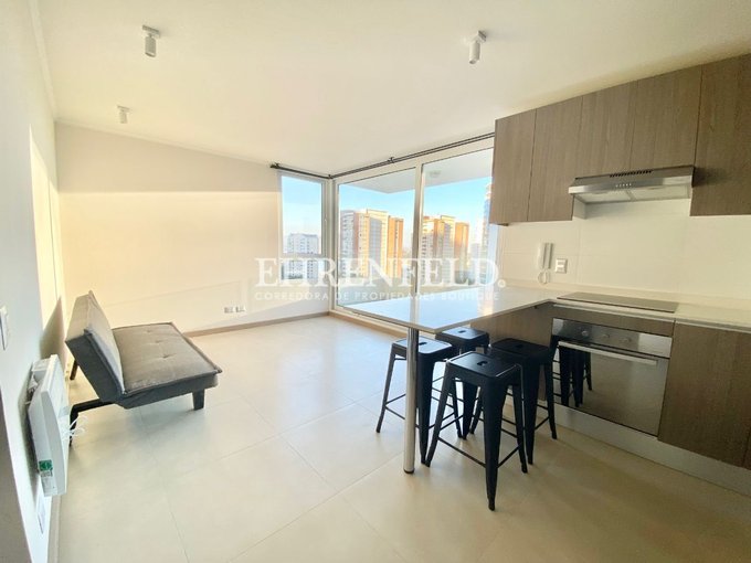 Acogedor departamento semi amoblado, con orientación suroriente ubicado en consolidado barrio residencial, frente a parque central, colegios, comercio y supermercados.