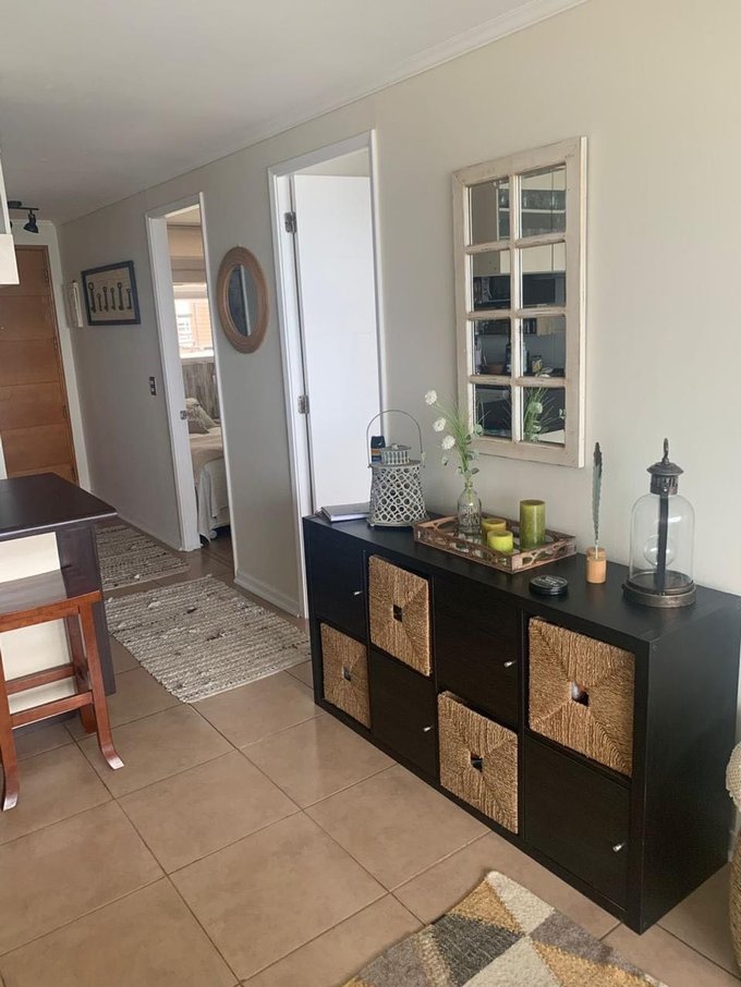 La propiedad cuenta con 2 dormitorios y 2 baños completos, cocina completamente equipada, y una amplia terraza cerrada con cierre de vidrio de cristal plegables, perfecta para disfrutar del mar durante todo el año. Todo el departamento posee piso cerámico, otorgando continuidad, fácil mantencion y estilo moderno.