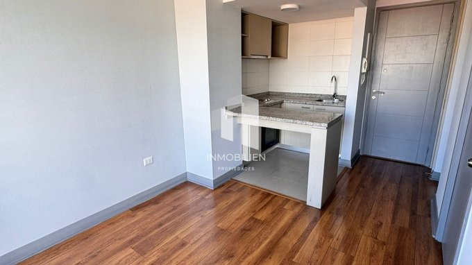 Departamento de 1 dormitorio y 1 baño, diseñado para maximizar cada espacio, con piso flotante, ventanas de pvc, cocina equipada con campana eléctrica, encimera y horno empotrado, baño con vanitorio cubierta de mármol.