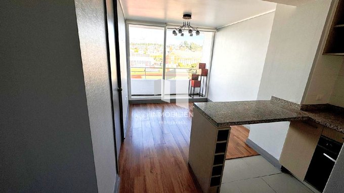 Departamento de 1 dormitorio y 1 baño, diseñado para maximizar cada espacio, con piso flotante, ventanas de pvc, cocina equipada con campana eléctrica, encimera y horno empotrado, baño con vanitorio cubierta de mármol.