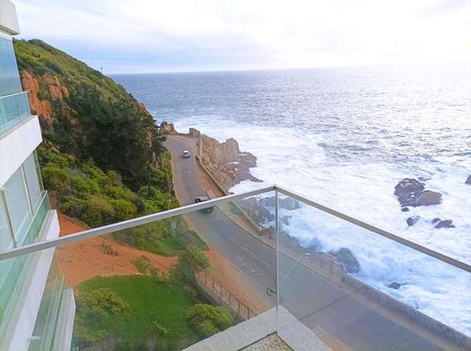 Lindo departamento con espectacular vista al mar en primera línea, 2 dormitorio, 2 baños, con estacionamiento, en plena Av. Borgoño, Concón.