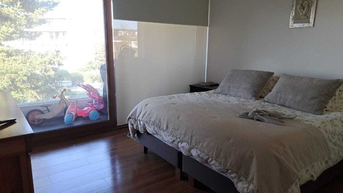 Este departamento pertenece a un exclusivo condominio de solo 7 edificios de 5 pisos, inserto en un parque de 2.2 hectáreas, lleno de hermosos árboles, jardines y senderos que podrás disfrutar desde tu terraza. Además, cuenta con plazas, juegos infantiles, piscinas, quinchos, gimnasio y sauna, ideal para relajarte y disfrutar del espacio y la naturaleza.
