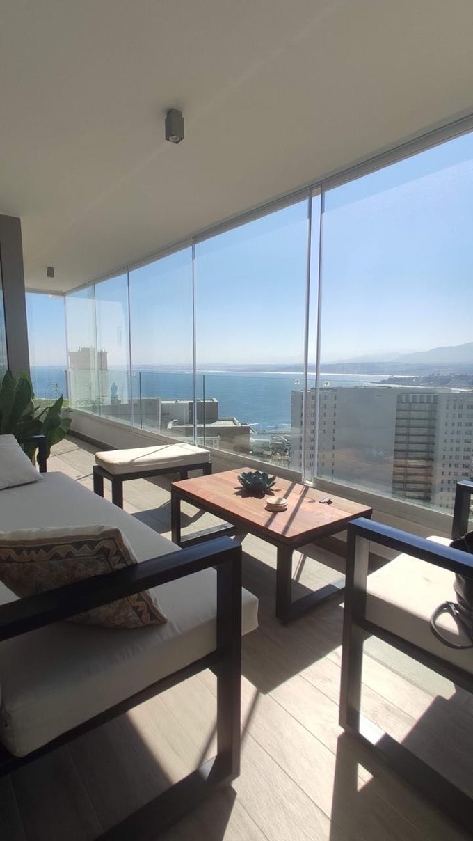Con 66 m y una terraza cerrada de 16 m, cuenta con una hermosa vista al mar y al Mauco