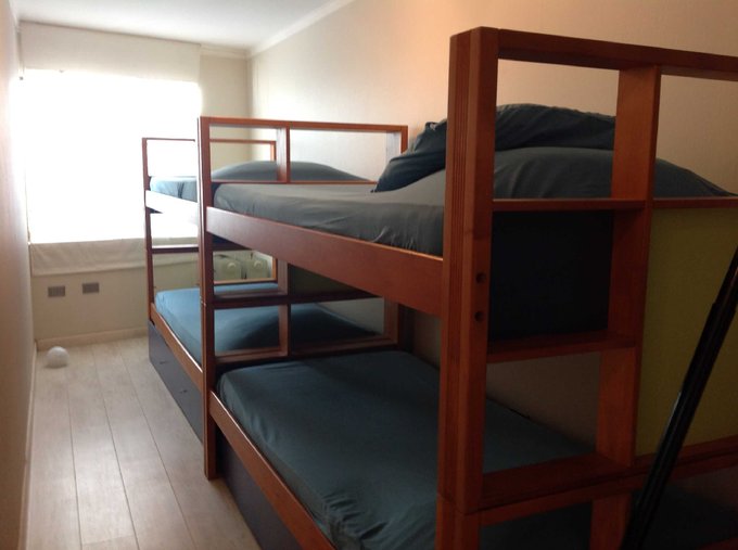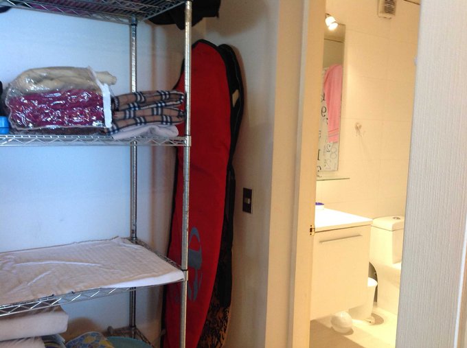Tiene un cuarto dormitorio con baño, fuera y frente a la entrada del departamento, que puede ser usado como dormitorio de servicio, un cuarto dormitorio independiente con baño para visitas, o bien como escritorio o bodega.