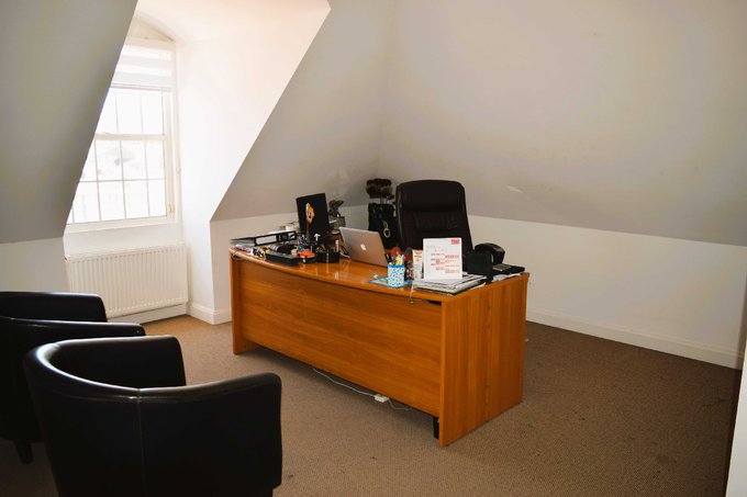 Primer Piso: hall de entrada, amplia zona de recepción para clientes (living), sala de reuniones, amplia cocina y zona de almacenaje, 2 privados, oficina principal con baño, 3 baños, terraza, acceso a garage cerrado para 3 automóviles.