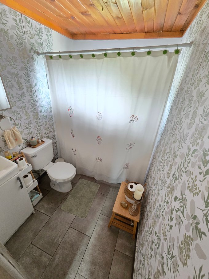 ●Cómoda cocina equipada con estufa a leña y baño independiente.