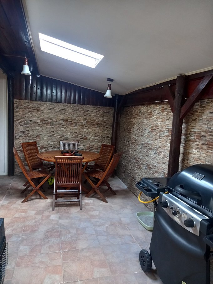 La casa cuenta con amplio living comedor, 3 dormitorios con closet, cocina amoblada, logia, 2 baños, sala de estar y habitación adicional (o bodega). Dispone estacionamiento para 2 vehículos y quincho cerrado.