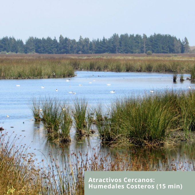 Entorno y Atractivos: Humedales costeros de Putú-Huenchullami (15 min) | Dunas de Putú (10 min) | Río Maule y Ramal (15 min) | Playas de Constitución (15 min) | Playas de Iloca-Duao (45 min) | Lago Vichuquén (60 min)