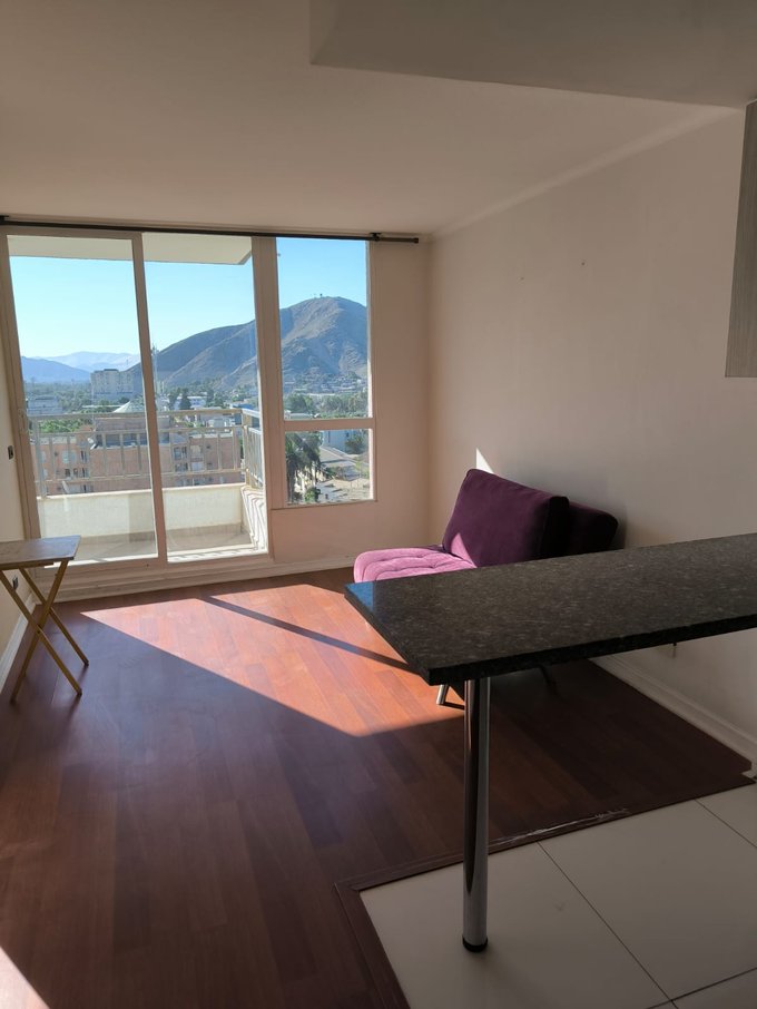 Propiedad en muy buen estado, ubicada a una cuadra de la plaza principal de Copiapó, cercana a bancos, colegios, supermercados, organismos públicos, notarías y otros servicios. Posee un dormitorio amplio con baño privado, walk in closet, cómoda terraza con vista al centro de la ciudad, cocina americana con hornillas y horno eléctrico. El departamento cuenta con termo eléctrico. El edificio cuenta con conserjería 24 horas, lavandería, gimnasio y sala de uso común.