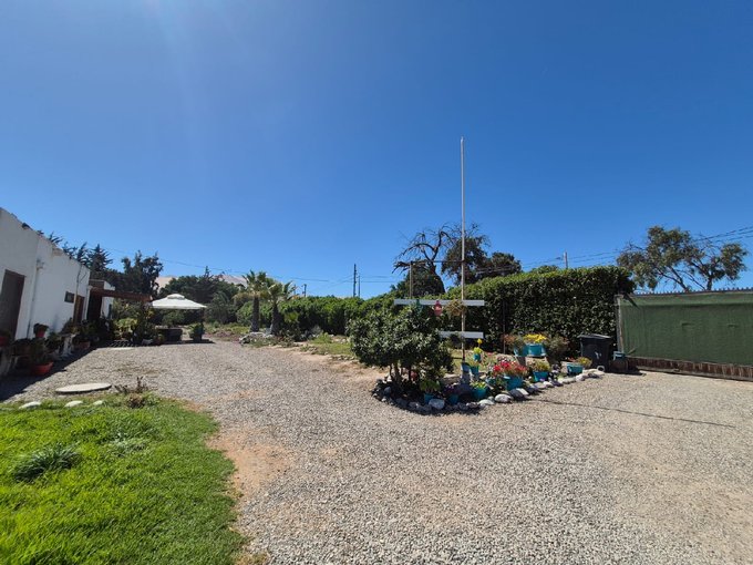 La propiedad se emplaza en un terreno plano de 5.000 m², completamente cerrado con pandereta y cerco vivo, contando con portón de acceso eléctrico y estacionamiento techado para dos vehículos. Dispone de todos los servicios esenciales: agua potable, energía eléctrica y pozo de subsistencia de 60 metros de profundidad.