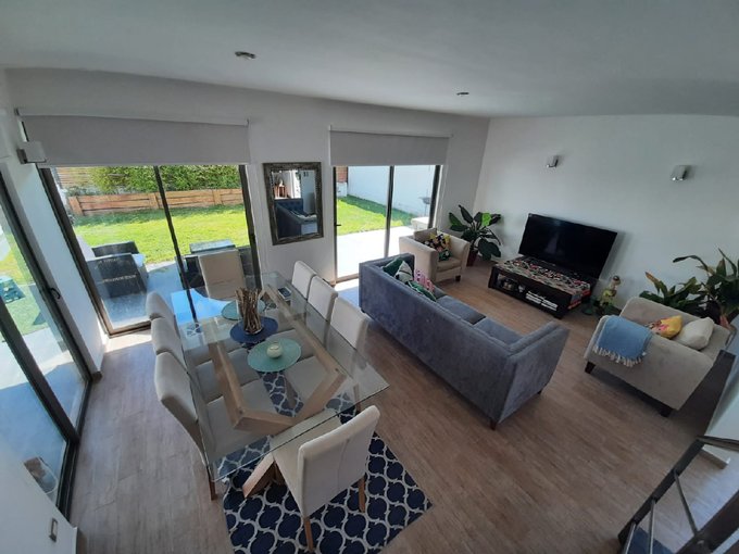 • Jardín y Terrazas: Amplio antejardín, patio posterior con césped natural y terraza techada ideal para reuniones sociales.