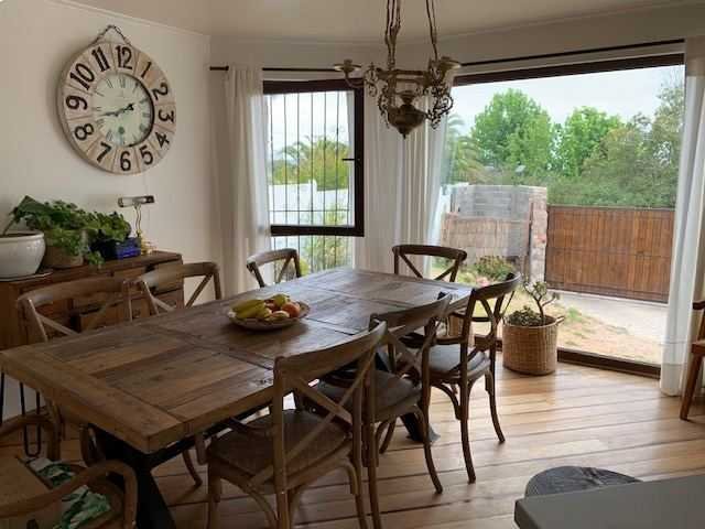 La casa tiene un amplio terreno de 1.032 m2 de forma regular y 205 m2 construidos, tiene 5 dormitorios (dormitorio matrimonial en suite con vestidor), 4 baños, más dormitorio y baño de servicio, amplio living con linda vista, comedor con cocina abierta, logia, patio de servicio y más.