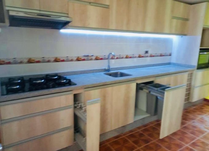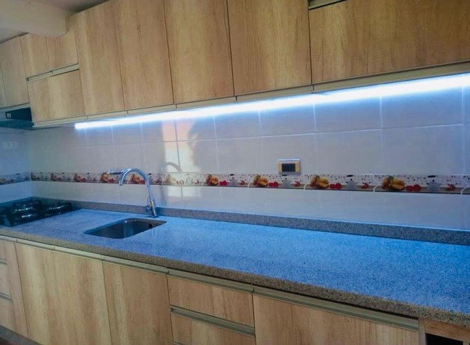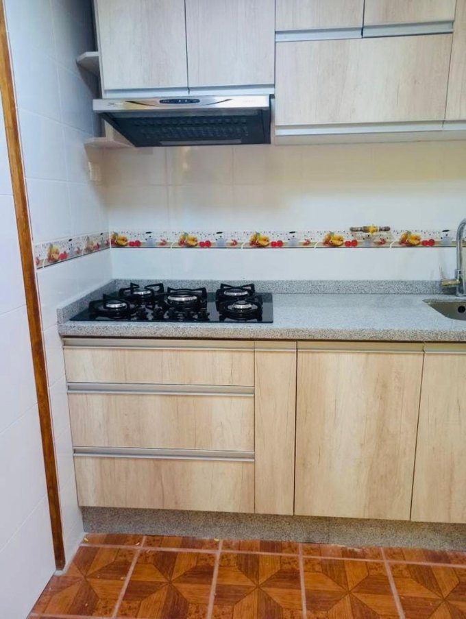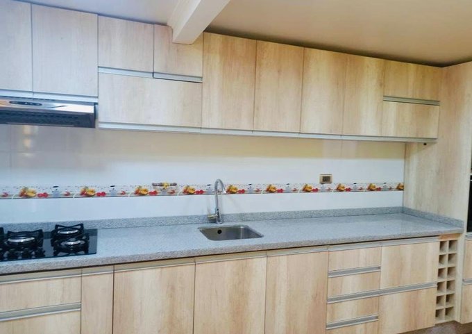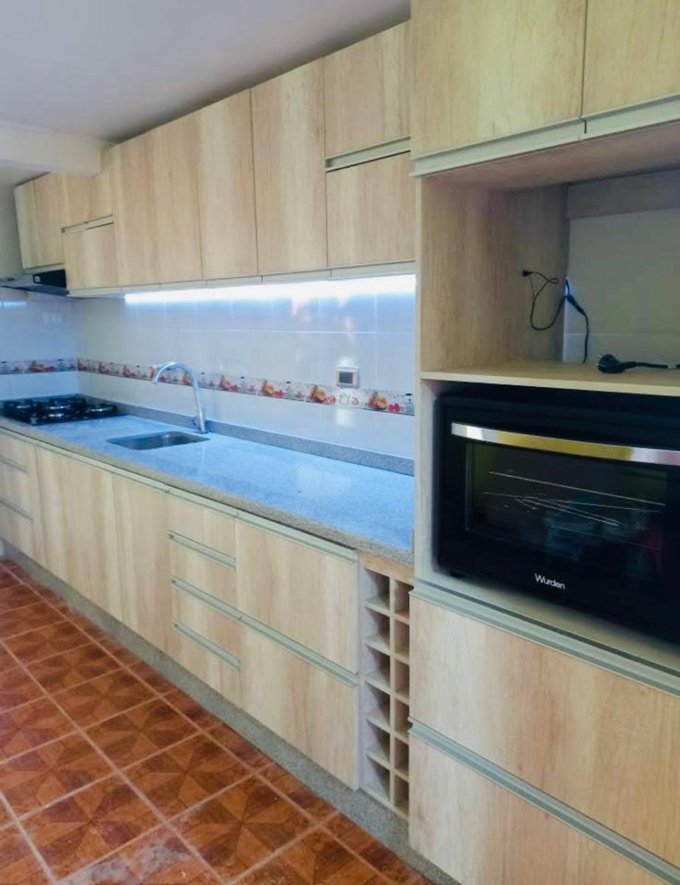 Cocina amoblada con comedor.