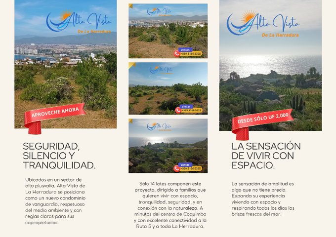 Se venden hermosos terrenos de 500 metros cuadrados en sector de alta plusvalía en La Herradura de Coquimbo. Hay disponibles 12 lotes y consisten en un nuevo proyecto de condominio en pleno desarrollo, que contará con portón automático, cámaras de seguridad 24/7, exclusivo quincho con mirador al océano y sector de parrillas, camino interior con iluminación, entre otras características.