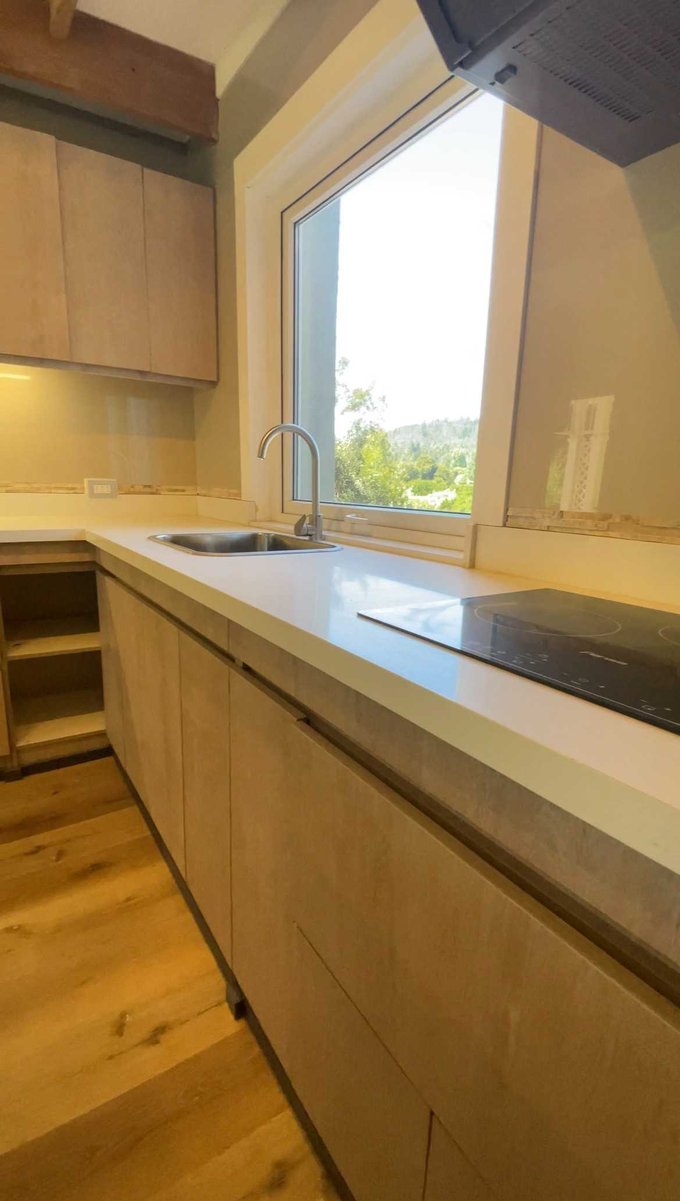 Cocina amoblada y equipada con encimera, horno y extractor eléctricos