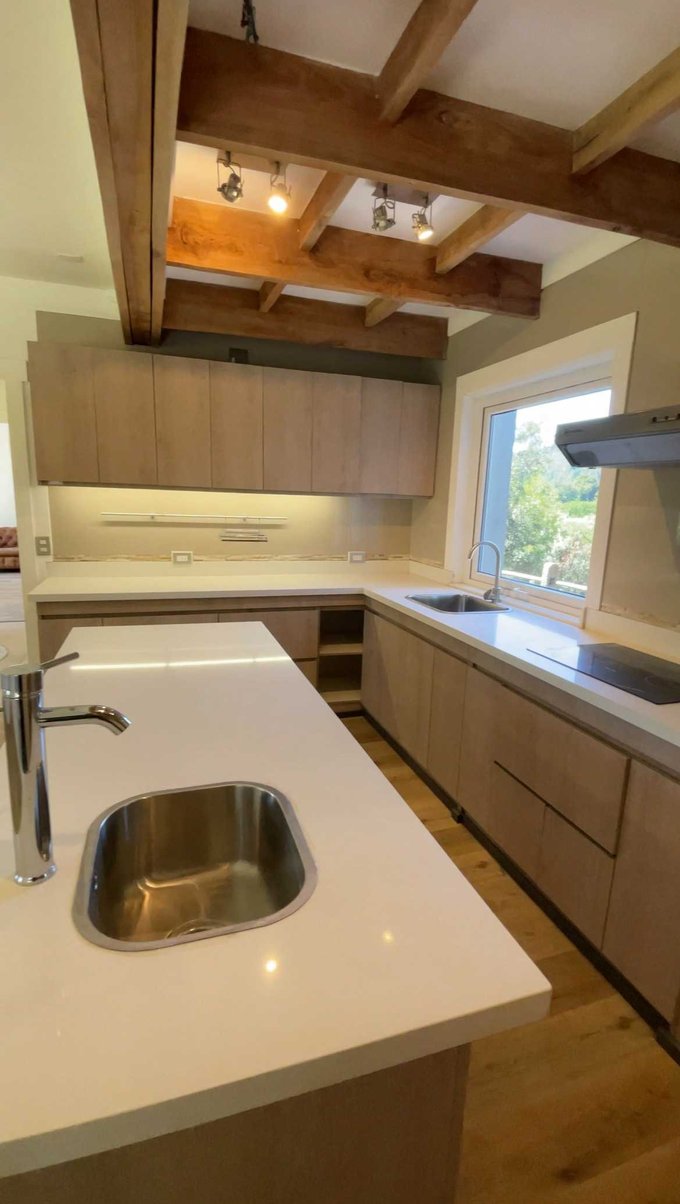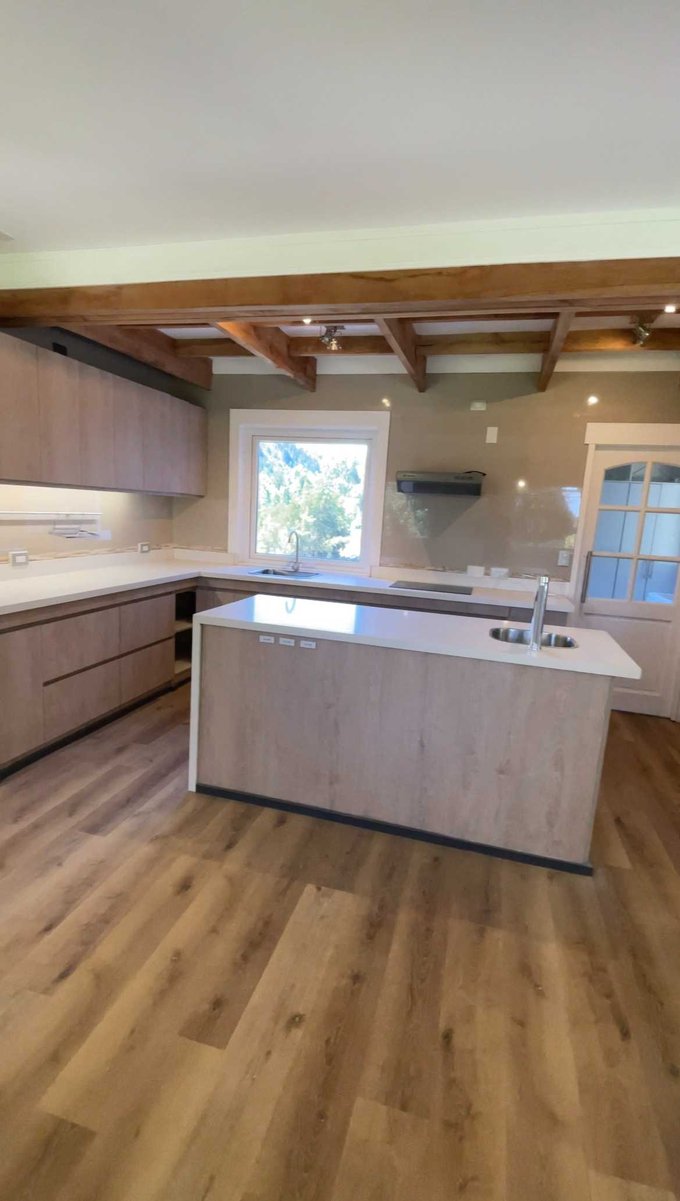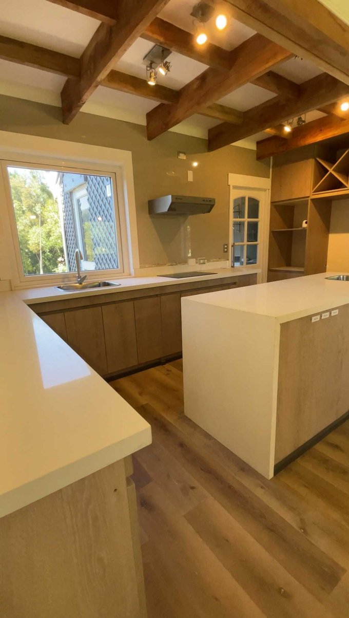 Cocina amoblada y equipada con encimera, horno y extractor eléctricos