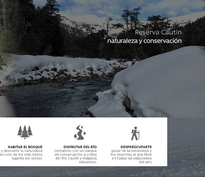 RESERVA CAUTIN 2da Etapa: Naturaleza y Conservación - Sueñas con tener tu refugio en la montaña y disfrutar de la mejor nieve de Chile? Al orillas del Río Cautin, con miradores mágicos y frente al Salto la Princesa. Con vistas al Volcán Lonquimay y a Sierra Nevada, a minutos de Malalcahuello