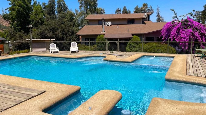 Baño exterior privado para sector de quinchos y piscina, tiene dos zonas de quincho, terraza, una pérgola y ambientes diversos.