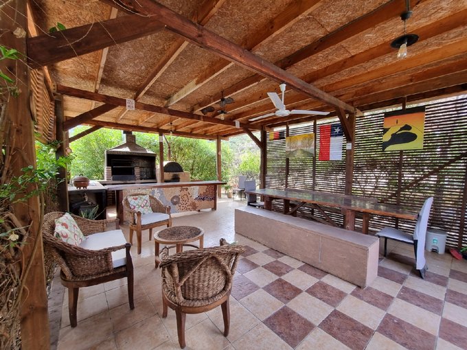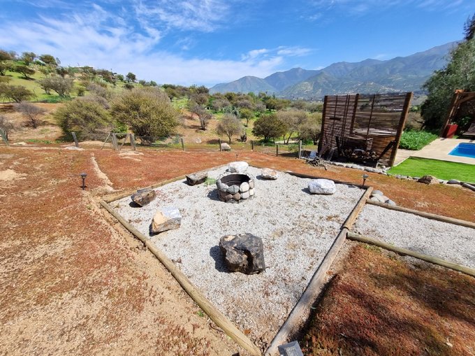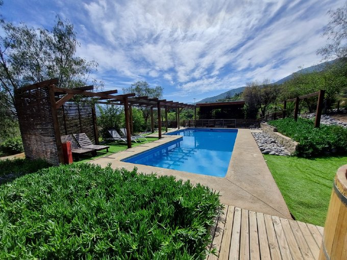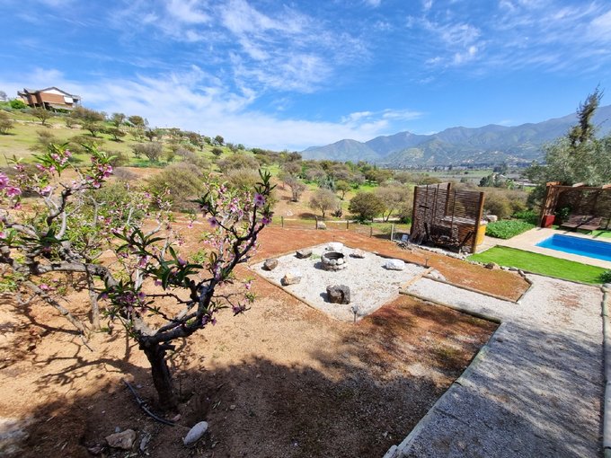 ÁREAS EXTERIORES: Piscina de 12 x 5 m con tinaja y zona de sombra. Quincho estilo americano. 2 estacionamientos techados + 6 adicionales. 2 estanques de agua (5.000 litros cada uno). Árboles frutales: duraznos, cítricos, kumquat y especies nativas.