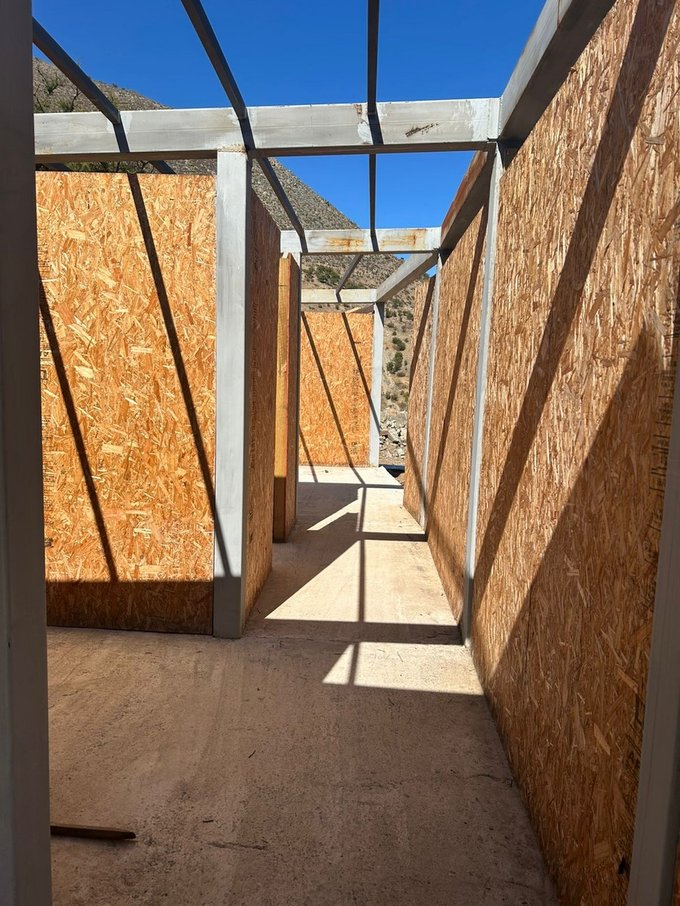 Casa en construcción en obra gruesa de 270 m2, estructura de hormigón, con vigas de fierro, radier, tabiques de paneles SIP instalados que se distribuyen formando
