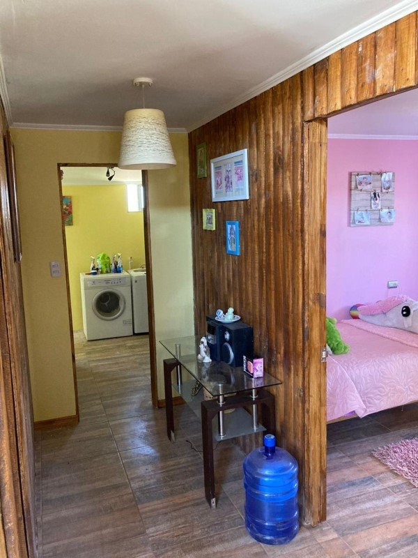 Casa principal , 212 m² (dos pisos) ,Primer piso en albañilería: 3 dormitorios, 2 baños (principal en suite), cocina, logia, living y comedor separados.