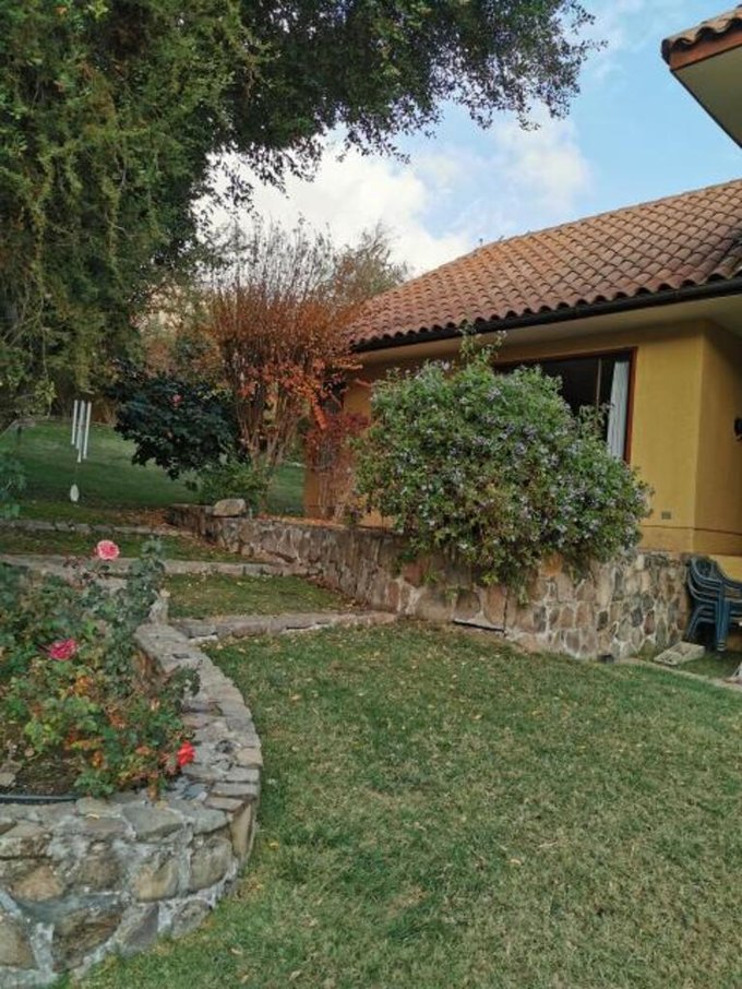 Linda piscina con jacuzzi, bodega con módulo para cuidador y ducha de servicio, canal, riego automático y jardín formado con huertos y árboles frutales como paltos, almendros, manzanos, duraznos, limones, nísperos, etc.