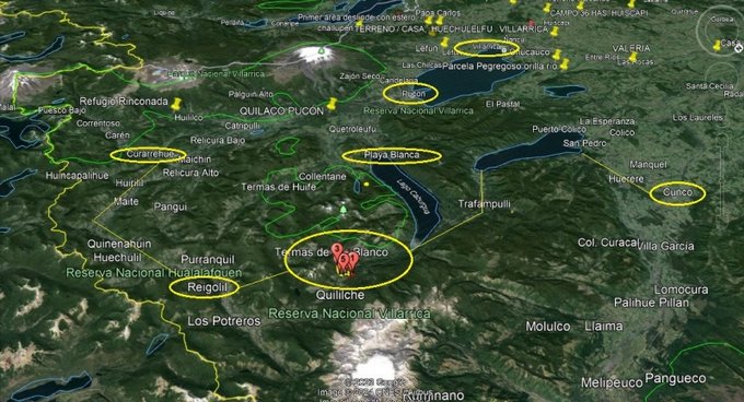 Desde Curarrehue hasta el campo en el sector de Quililche, existe una distancia de 55 km. aproximadamente, camino público ripiado accesible y transitable durante todo el año , a 75 km queda ubicado la ciudad de Cunco y a 4,5 km del campo se encuentran las termas de Río Blanco.