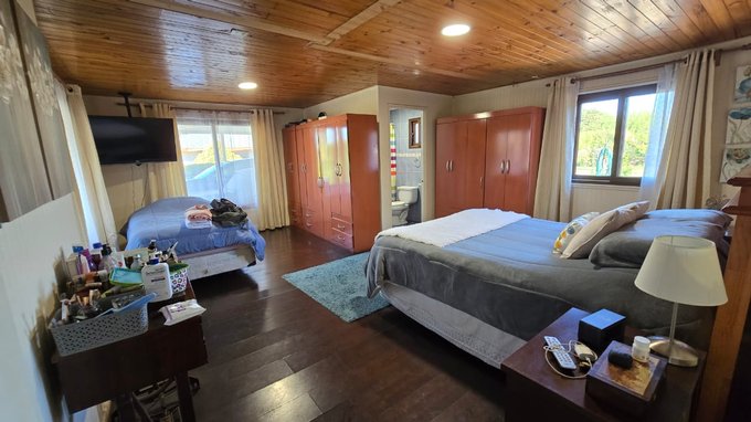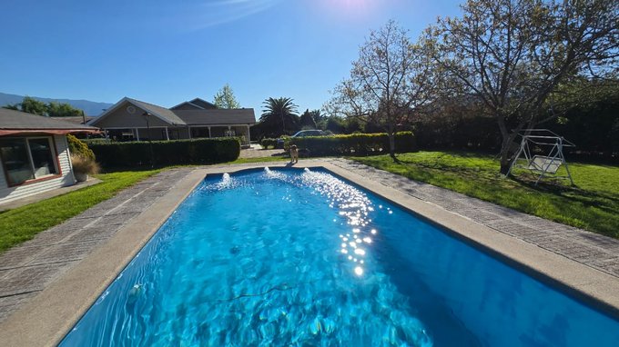 Dentro de la casa quedan los muebles de cocina, estufa a combustión (tipo Bosca), closets instalados, implementos de limpieza para piscina, máquina de ósmosis inversa, estanque de agua de 2.500 litros, calefón y juegos para niños.
