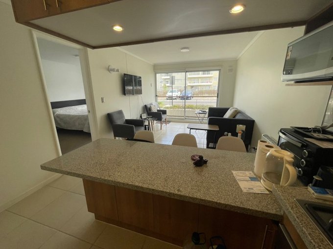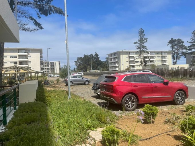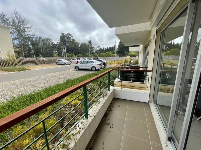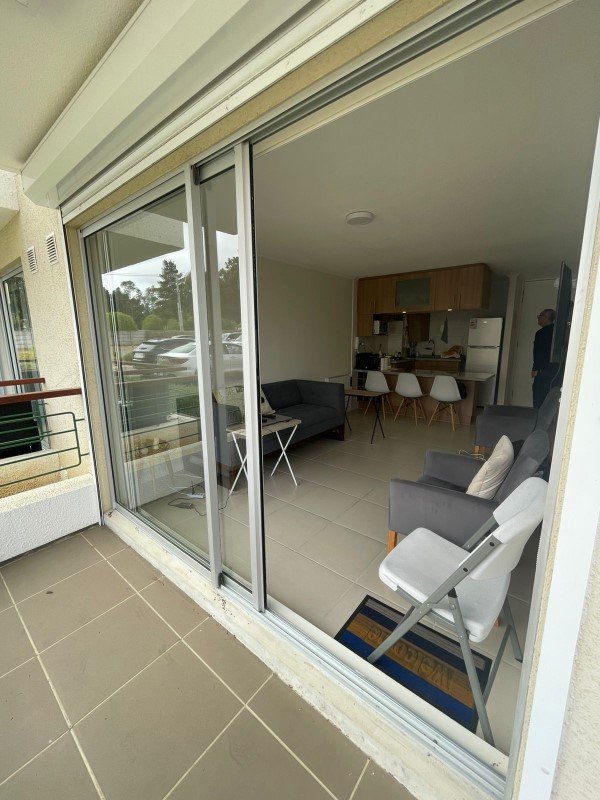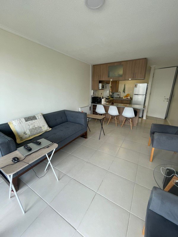 Departamento casi nuevo, 1 dormitorio un baño, 1 Estacionamiento en Condominio Parquemar en El Tabo. Persianas metálicas eléctricas. Piso con porcelanato en living, cocina y baño, y alfombra en dormitorio.
