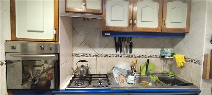 Cocina amoblada equipada y con espacio para comedor de diario y terraza