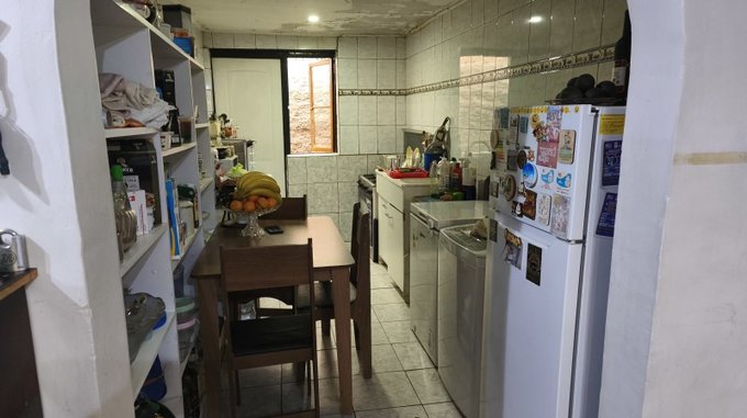 pequeño espacio atrás para lavadora o bodega..