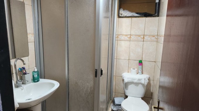 pequeño espacio atrás para lavadora o bodega..
