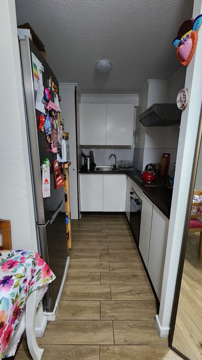 2 habitaciones y 1 baño, con closet incluido en cada habitación, cocina integrada y equipada, 4 encimeras y campana, agua caliente por termo eléctrico y Conexión para lavadora.