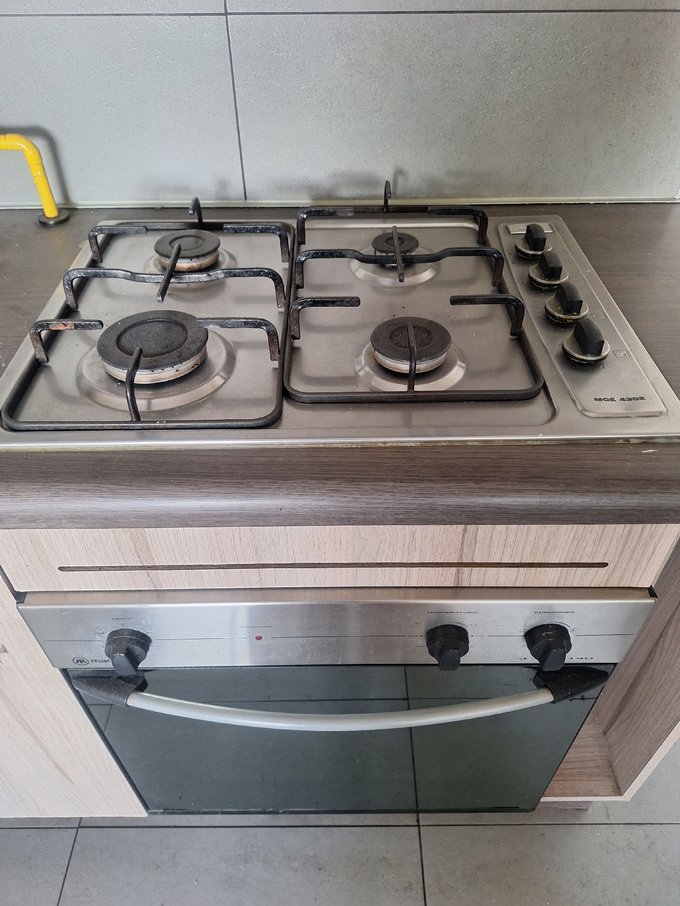 Cocina integrada, completamente amoblada y equipada con encimera a gas, horno eléctrico y campana