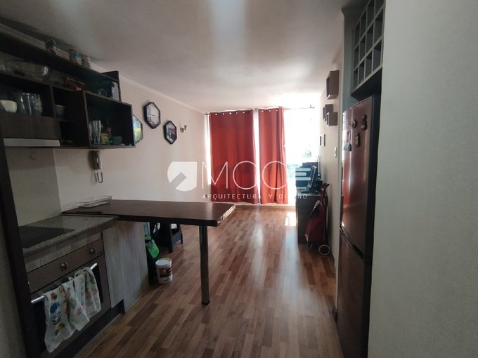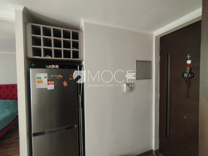 Cuenta con cocina integrada al living comedor, lo que entrega una sensación de mayor amplitud y una distribución funcional. El dormitorio dispone de clóset y un baño completo con conexión para lavadora, con cerámicos en pisos y muros.