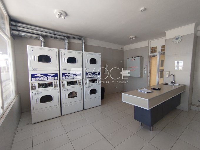 El edificio cuenta con áreas comunes como quincho, piscina, gimnasio, dos salones de eventos, agua de caldera con medidor, 3 ascensores, recepción, conserjería y estacionamiento de visitas.
