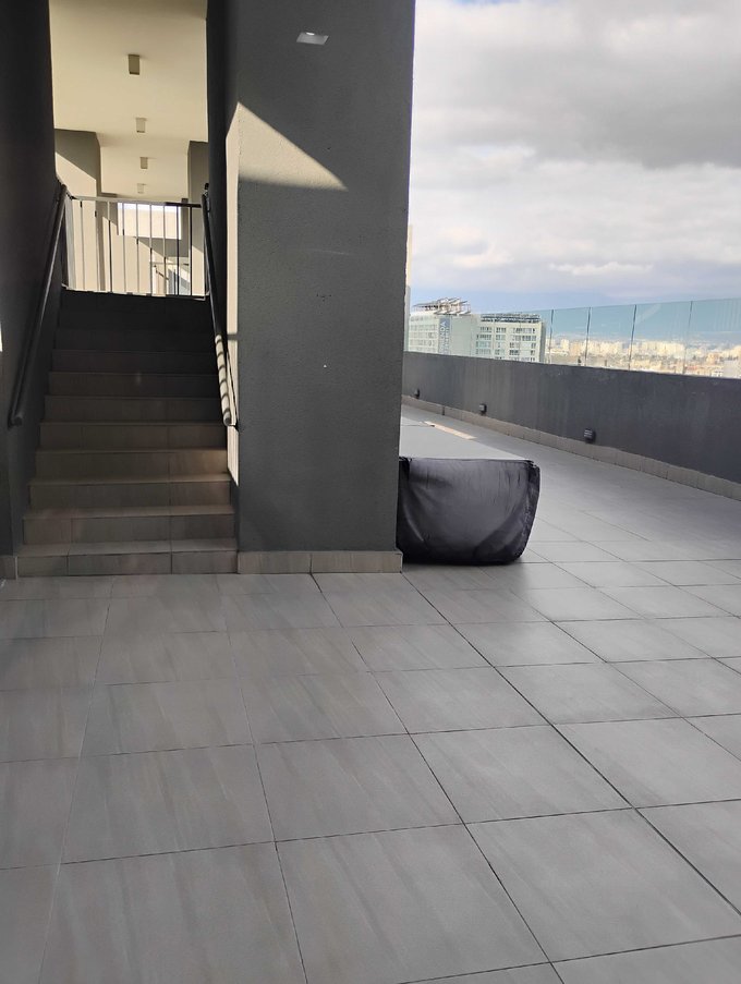 Departamento de 1 dormitorio, 1 baño, cocina americana con encimera electrica de 2 platos más horno. Piscina y quinchos ubicados en la azotea, además cuenta con un gimnasio en el piso 1 y un salón destinado para que jueguen los niños.