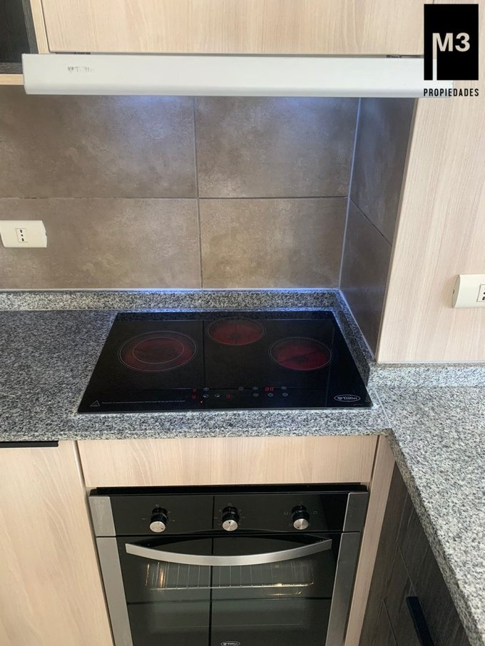 - Cocina amoblada tipo americana y equipada con horno, encimera de vitrocerámica, campana, y con conexión para lavadora.