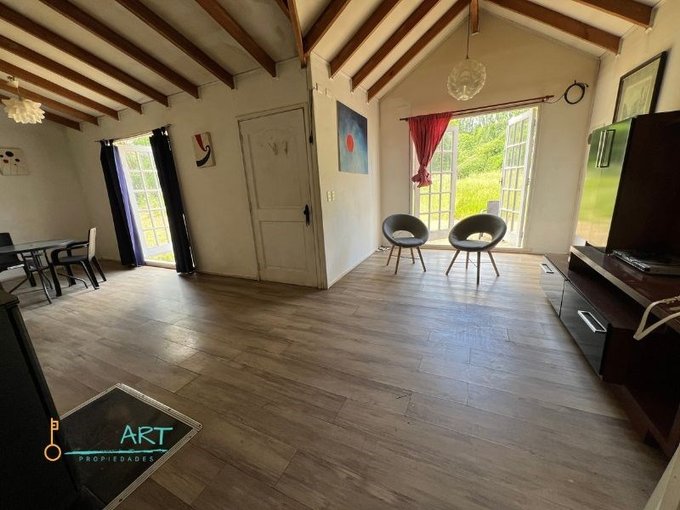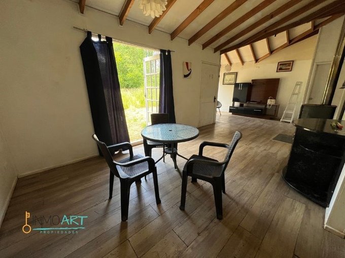 Casa de madera, de encantador diseño, en muy buenas condiciones, con hermosos árboles a su alrededor.