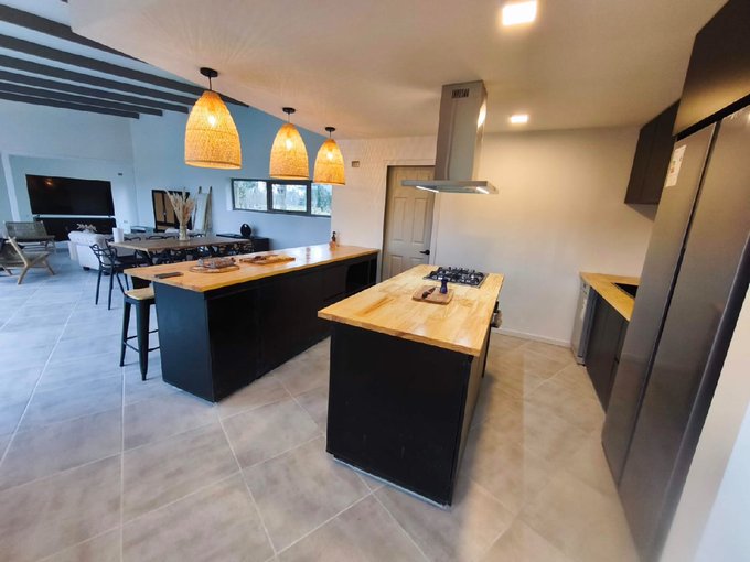 - Living, comedor y cocina con concepto abierto.