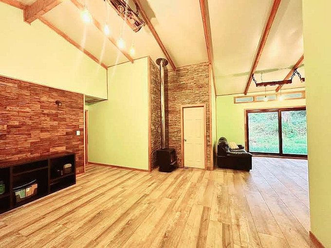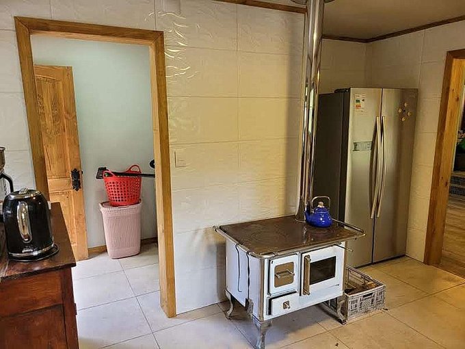 La casa está edificada sobre radier y tiene una terraza en todo el frontis. Todas las ventanas son de termopanel el piso es flotante con cerámicas en baño y cocina y tiene dos calefacciones a leña funcionando en living y cocina. Cuenta con cierre perimetral, closet, barras para cortinas, cocina a gas.