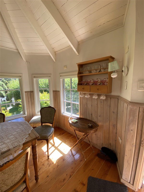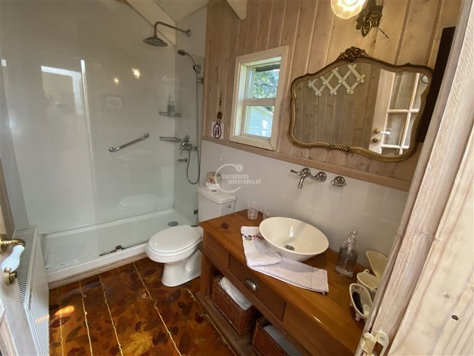 .En el jardín, tiene una cabaña de las mismas características de la casona, de 119 m2 con living, kitchenette, dos dormitorios y 1 baño, para 4 personas.
