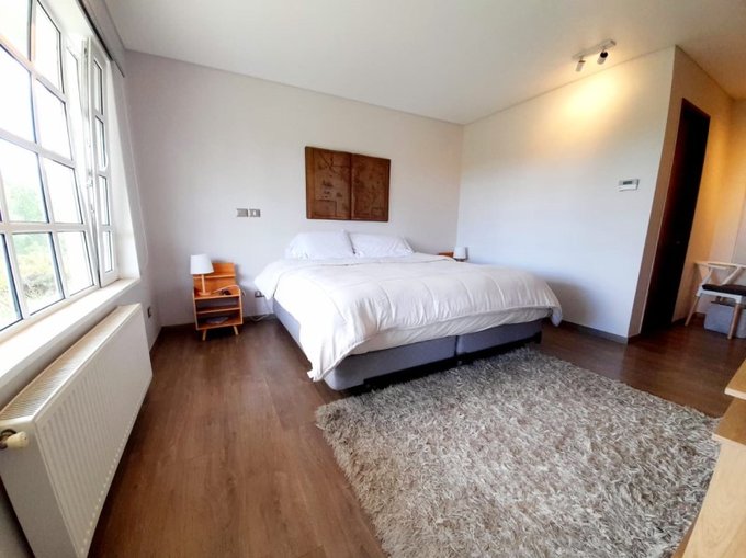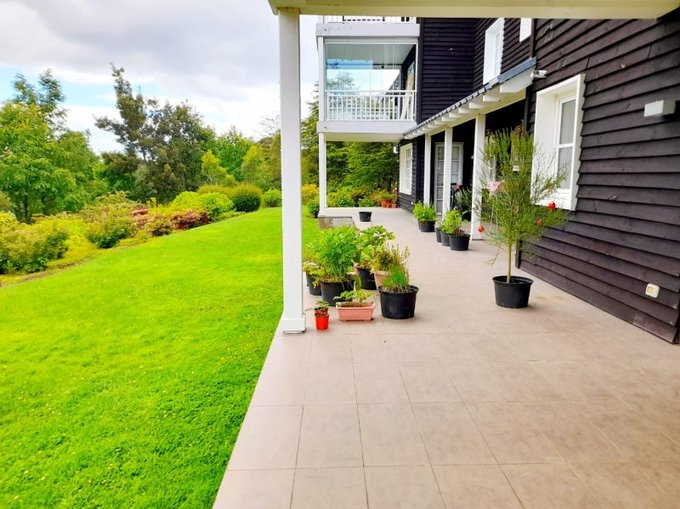 Ubicado en el mejor condominio del sector, con grandes extensiones de jardines (diseño de paisajismo) y club de golf, el departamento es único y exclusivo, ya que posee terraza continua, es decir, en toda la extensión de departamento y salida a jardines, brindando una sensación de casa con hermosas vistas del Lago Llanquihue y áreas verdes.
