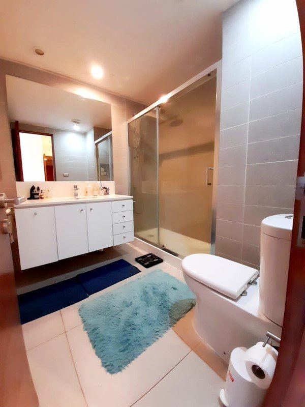 El departamento se vende equipado y cuenta con mucha iluminación natural por su orientación hacia el nororiente, y tiene una distribución muy cómoda ya que posee un hall de entrada que comunica hacia la izquierda con el área común de living comedor y cocina semiintegrada, con salida a terraza con vista al lago. La cocina posee una logia y está completamente equipada con muebles en piso y muro, superficies de granito y modernos diseños en electrodomésticos y muebles.